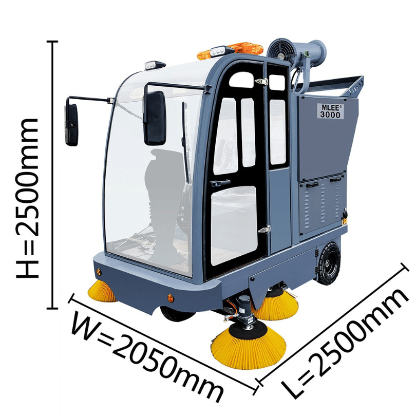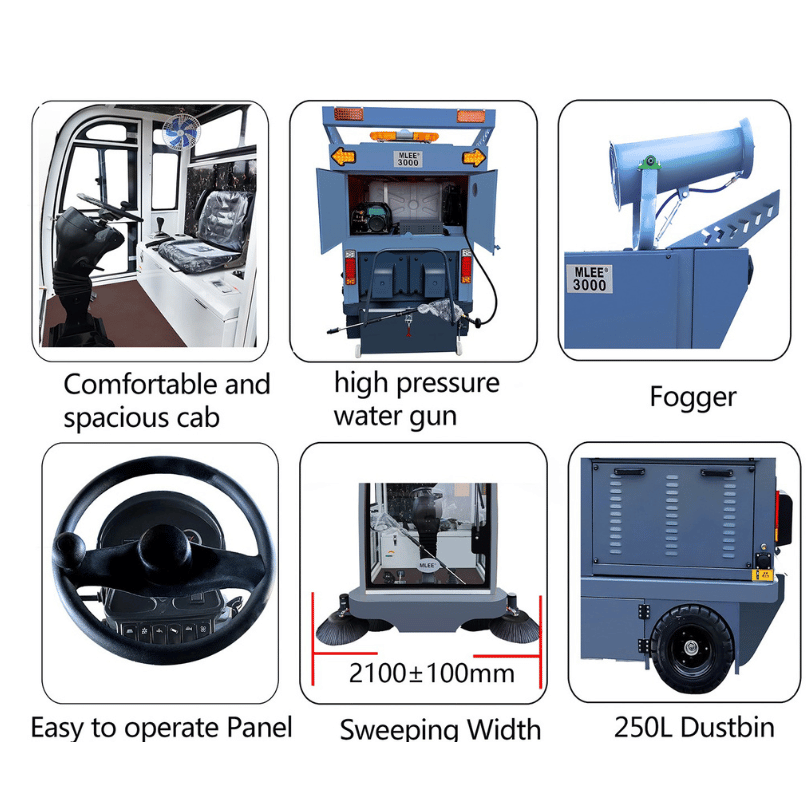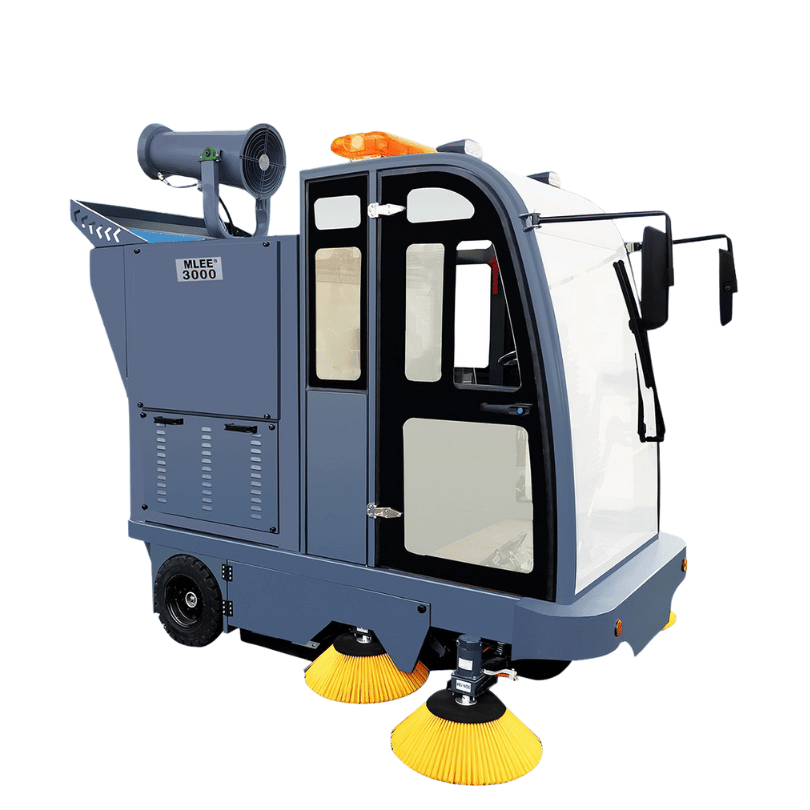 BARREDORA DE CALLE MLEE4000, es una barredora de 4 ruedas totalmente cerrada, además de las funciones básicas de barrido y recogida de polvo, también está equipada con nebulizador de control remoto y pistola