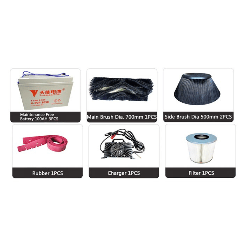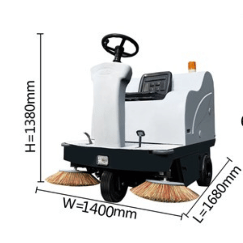 BARREDORA DE PISO MLEE1450, es una barredora de suelo, equipada con un conjunto de 3 ruedas. Para las hojas, polvo, basura barrido y recogida, Estructura de acero al carbono. Ideal para el barrido de los estacionamientos y todos los lugares externos de las escuelas, centros comerciales, aeropuerto, depositos parques y jardines. Esta equipada con un panel de instrumentos de facil operación, un deposito para el material recogido de 120 litros, posee un ancho de limpieza de 1.40mts, una altura de 1.380mts y largo de 1.680mts.