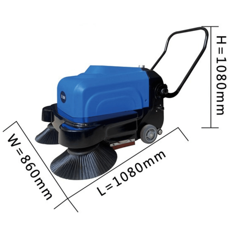 Barredora de Pisos, Modelo MLEE1000, especialmente diseñada para lugares exteriores como parking de edificios o estacionamientos, integra el barrido y recolección de polvo, con un excelente rendimiento es a bateria, su diseño y apariencia elegante.